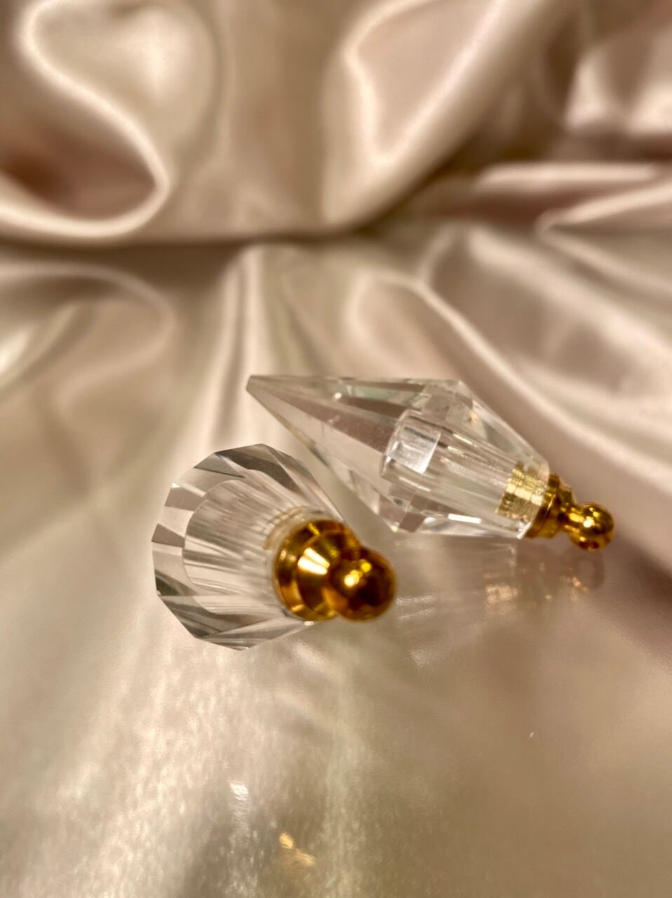 水晶の香水瓶です。香水を入れる部分は蓋のついている僅かな部分です。