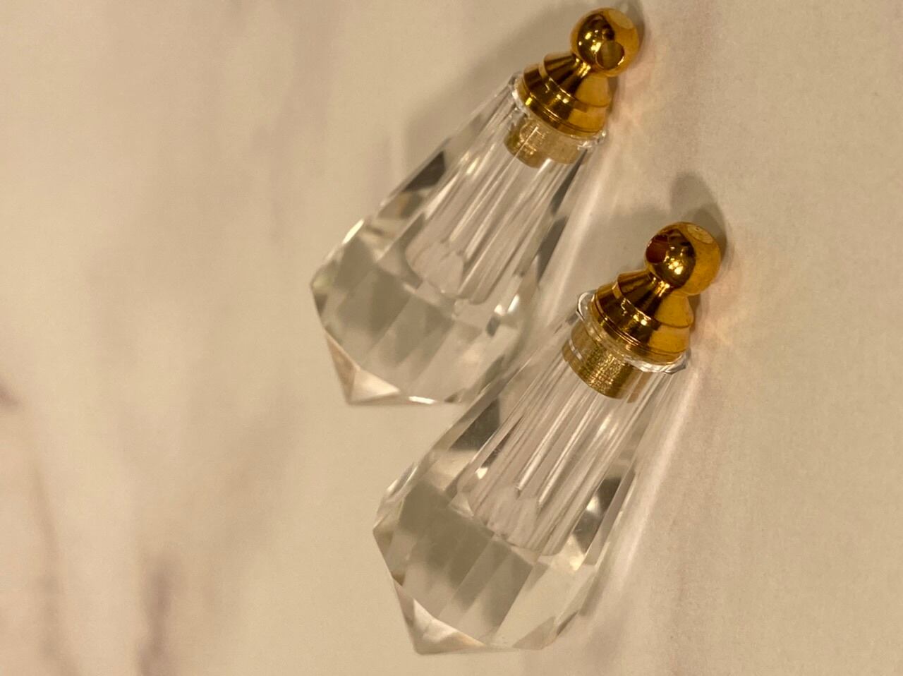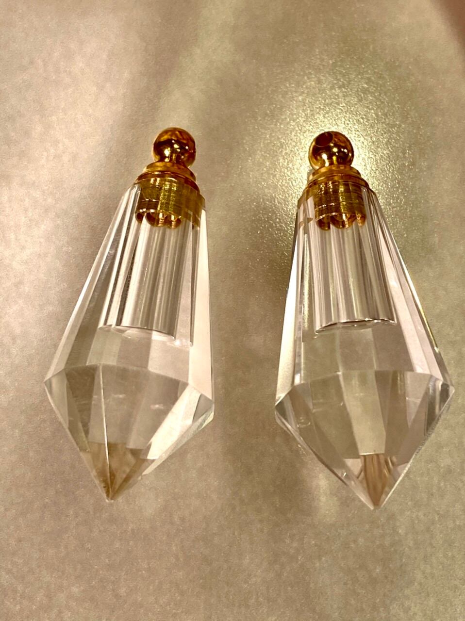 水晶の香水瓶です。香水を入れる部分は蓋のついている僅かな部分です。