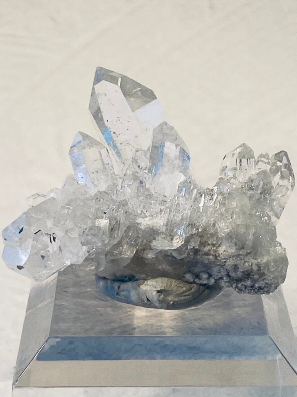 ブラジル産の水晶クラスター原石です。小型ですが、透明度が高くひとつひとつの結晶がしっかりと光を反射して輝く水晶です。