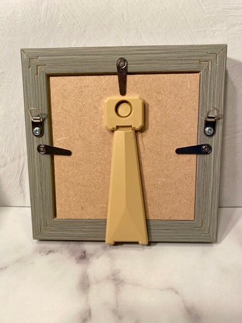 ●ジェムフレームの裏についているプラスチック製スタンドは少し硬くなっております。額縁裏板との接着面に近い箇所(脚の根本付近)を持ちながらカチッと音がするまで脚を開いてお使い下さい。