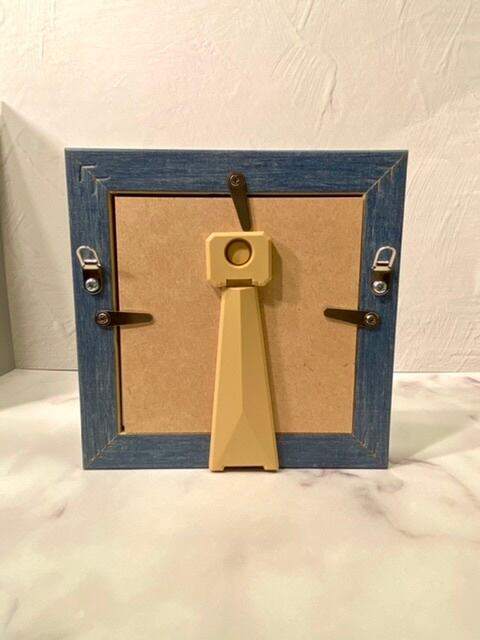 ●ジェムフレームの裏についているプラスチック製スタンドは少し硬くなっております。額縁裏板との接着面に近い箇所(脚の根本付近)を持ちながらカチッと音がするまで脚を開いてお使い下さい。