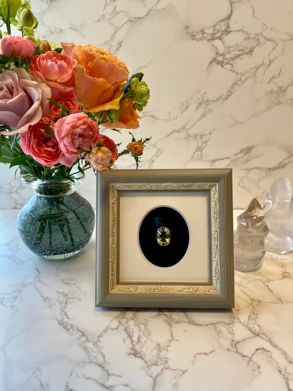 宝石ルースを美しい額縁で額装したジェムフレームです。